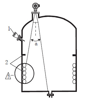 ● 在 信號波束內(nèi), 應(yīng)避免有如下安裝物(1):例如限位開關(guān),溫度傳感器等。● 對稱裝置(2),如真空環(huán),加熱線圈,擋板等等?!?如果罐內(nèi)有(1)(2)干涉物件,應(yīng)采用導(dǎo)波管進行測量。 3.3安裝選擇● 天線尺寸:天線越大,波束角越小,干擾回波將越弱?!?天線調(diào)整:將天線調(diào)整到測量位置。(見樣本第8頁)● 導(dǎo)波管:導(dǎo)波管安裝用來避免干擾回波。(見樣本第9頁)