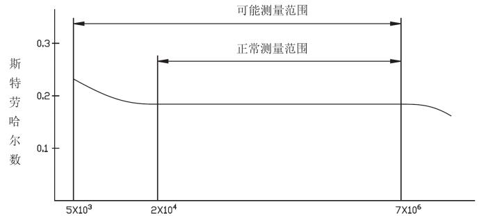 對(duì)于設(shè)計(jì)正確的漩渦發(fā)生體,Strouhal 數(shù)在很廣的雷諾數(shù) Re 范圍內(nèi)保持恒定
