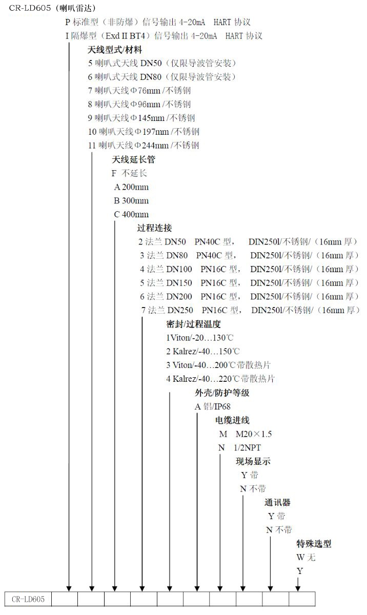 6.3G雷達CR-LD605適應(yīng)存儲容器或過程計量環(huán)境,液體、漿料、固體比如:輕油儲罐,原煤、粉煤倉位,揮發(fā)性液體儲罐,焦碳料位,漿料儲罐,固體顆粒