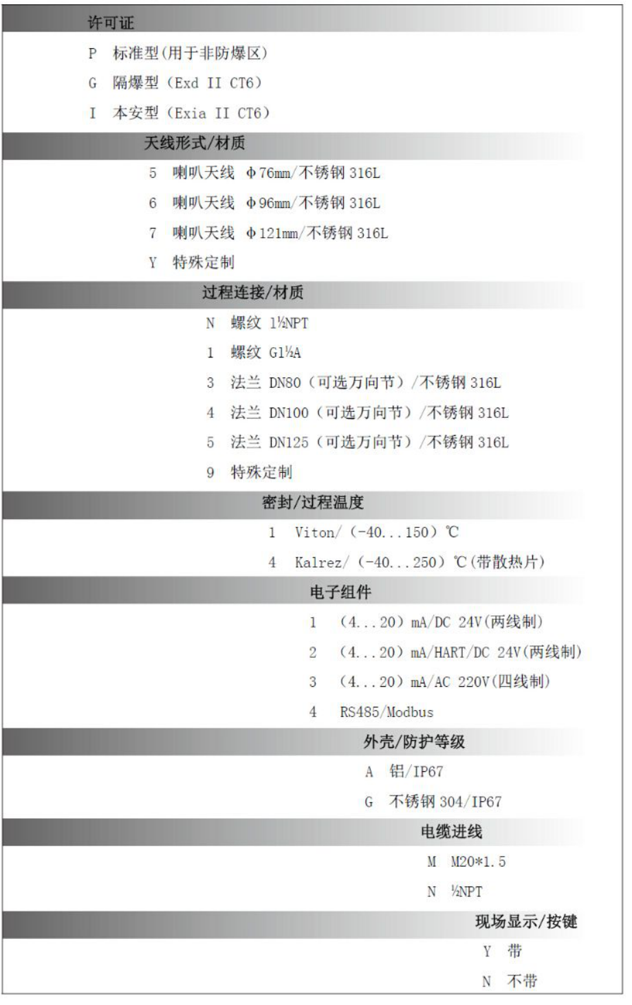 應(yīng) 用: 固體料位、過程容器、強粉塵、易結(jié)晶、結(jié)露場合