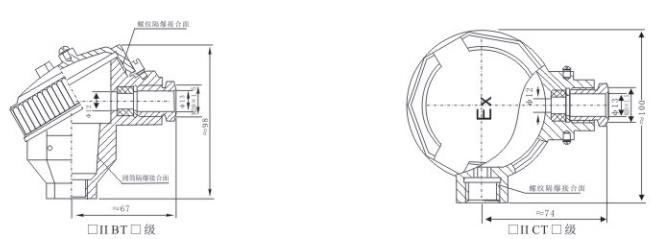 隔爆熱電阻是利用物間隙隔爆原理,設(shè)計具有足夠強度的接線盒等部件,將所有會產(chǎn)生火花、電弧和危險溫度的零部件都密封在接線盒腔內(nèi),當(dāng)腔內(nèi)發(fā)生爆炸時,能通過接合面間隙熄火和冷卻,使爆炸后的火烙和濯度傳不到腔外,從而進行隔爆。